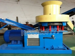 工作原理:将准备压制的秸秆或牧草进行铡切或揉丝,其长度50mm以下,含水率控制在10~25%范围内,经上料输送机将物料送入进料口,通过主轴转动,带动压辊转动,并经过压辊的自转,物料被强制从模型孔中成块状挤出,并从出料口落下,回凉后(含水率不能超过14%),装袋包装。